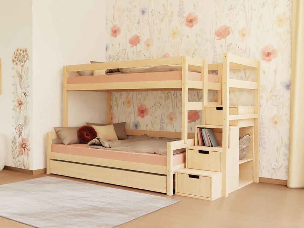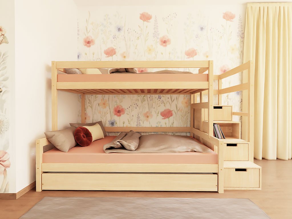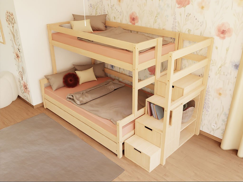 Bunk bed LUCKY with 120x200 bottom bed and storage stairs