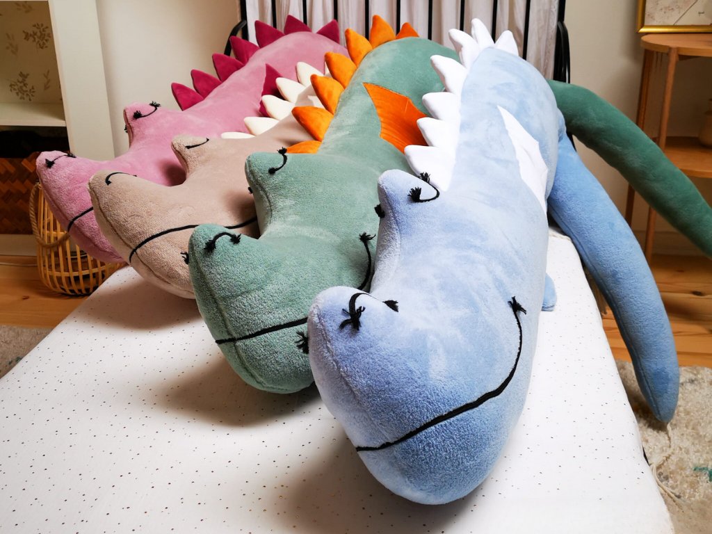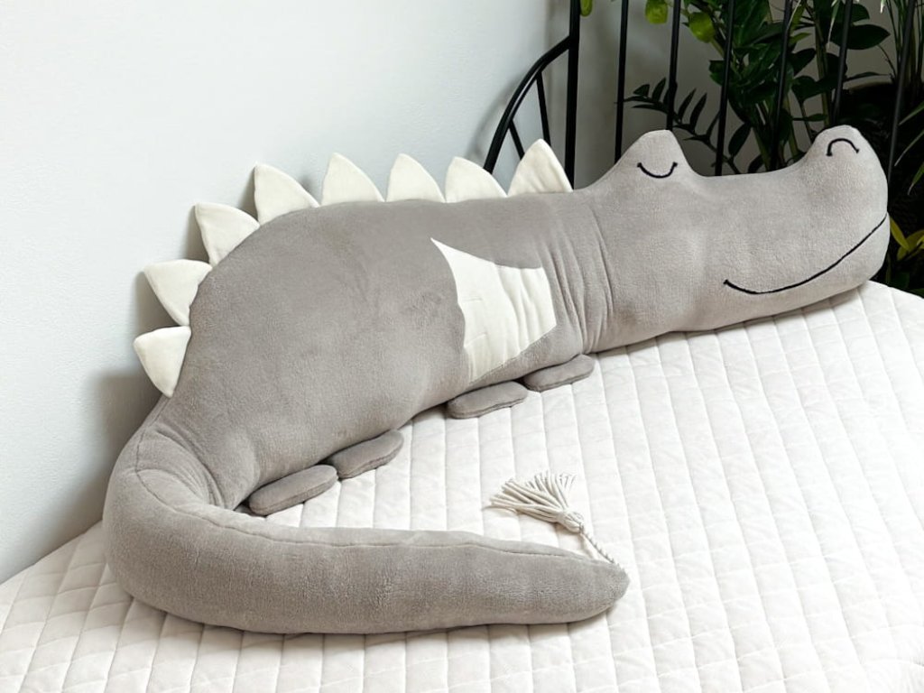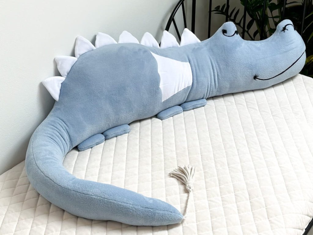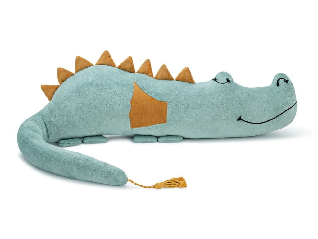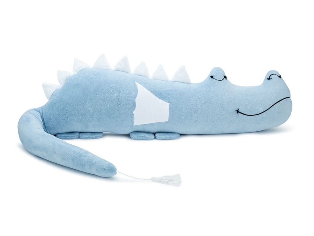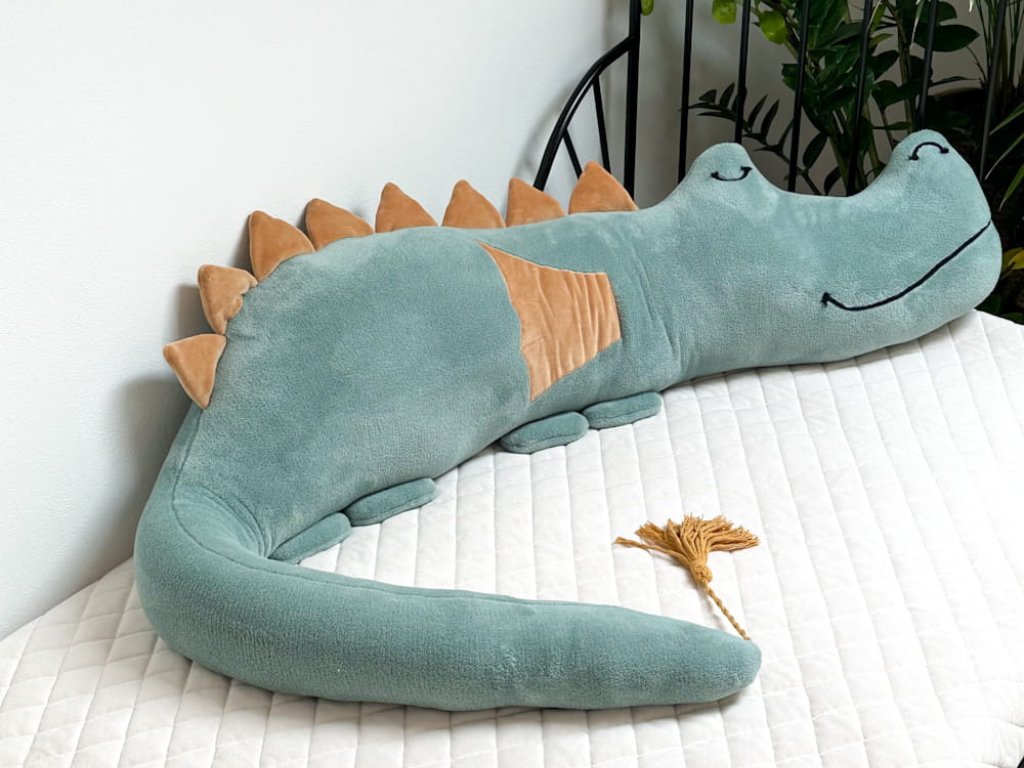 The dragon bumper is hand-sewn from high-quality materials, with embroidered eyes and mouth, and filled with siliconized fiber. It is also suitable for small allergy sufferers who need to be warm and safe. Made from a polar plush, it is a soft and cuddly friend for every child's bed.