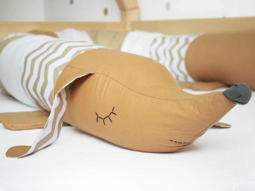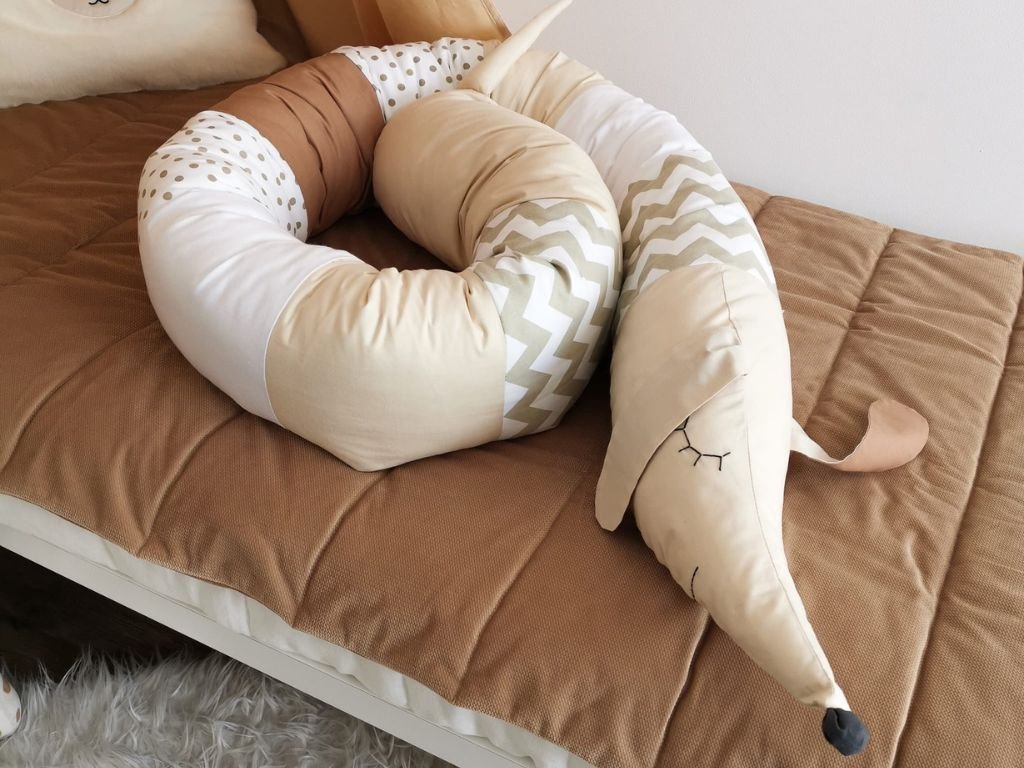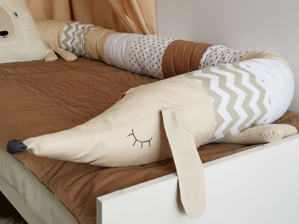 A comfortable pillow, practical bumper, and a soft toy for sleeping - you get all three in one with the cotton colorful bumper for the crib with the HEDGEHOG motif. It has a length of 250 cm and a height/width of 14-15 cm, covering a sufficiently large area to keep your little one warm and safe.