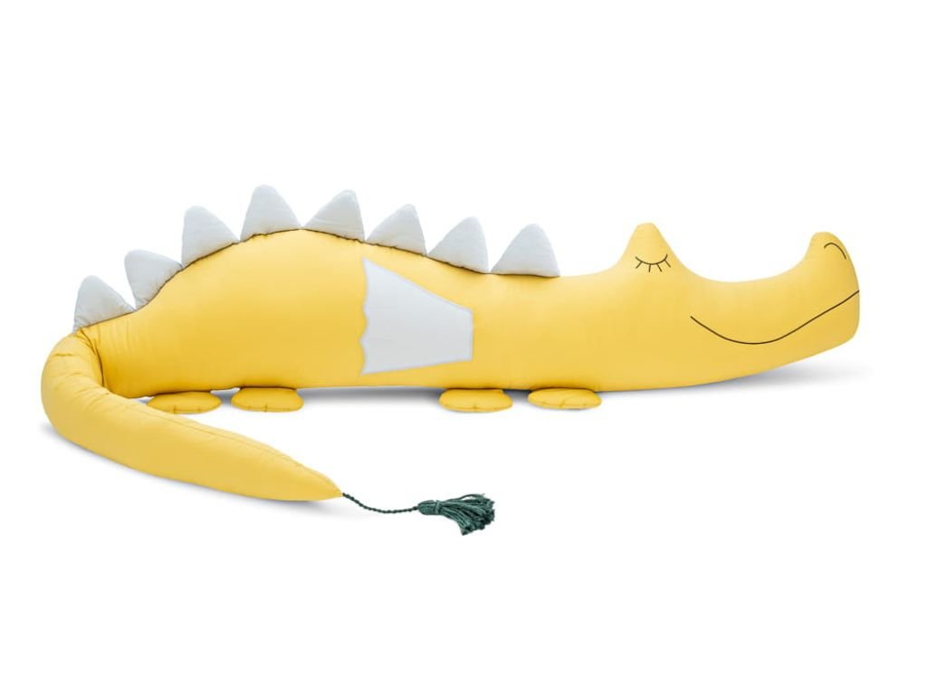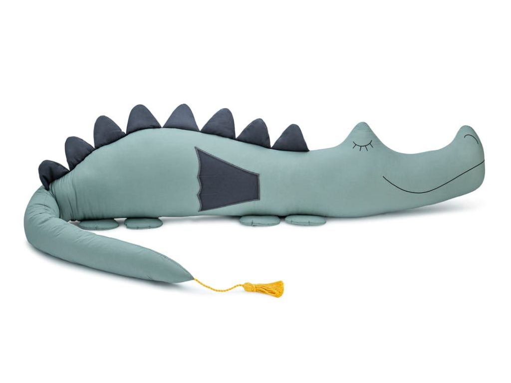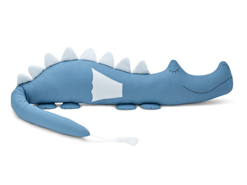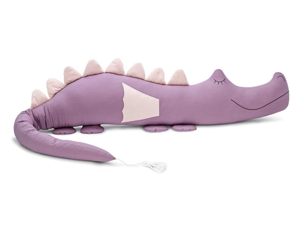 The bumper is made in accordance with OEKO-TEX Standard 100. It is made of 100% cotton with a plain weave and filled with anti-allergic siliconized fiber balls. The eyes and mouth are hand-sewn. The overall length of the dragon is 200 cm, its tail is 85 cm long, and its belly is 30 cm high, making it suitable for any crib.