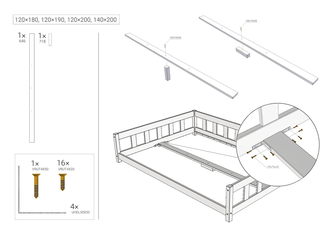 - Reinforcement under the bed Tuly from a width of 120 cm: Manual