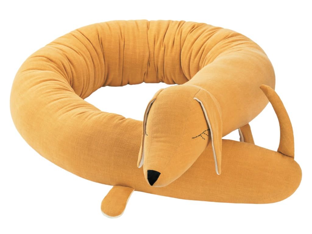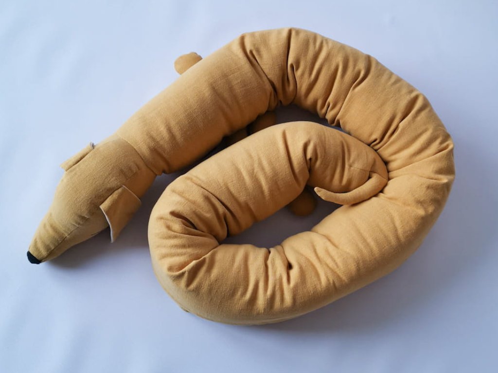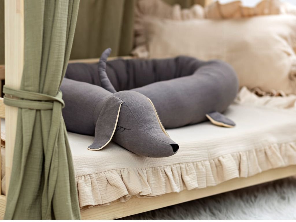 Get your child a high-quality safety guard, a sleeping pillow, and a sleeping buddy all in one with the hedgehog motif guard. It has handmade eyes and mouth, which increases its longevity and makes each piece unique. Thanks to its shape and free placement in the bed, the guard is also suitable for larger children, as it is enough to spread it to full length and cover a larger area of the bed.
