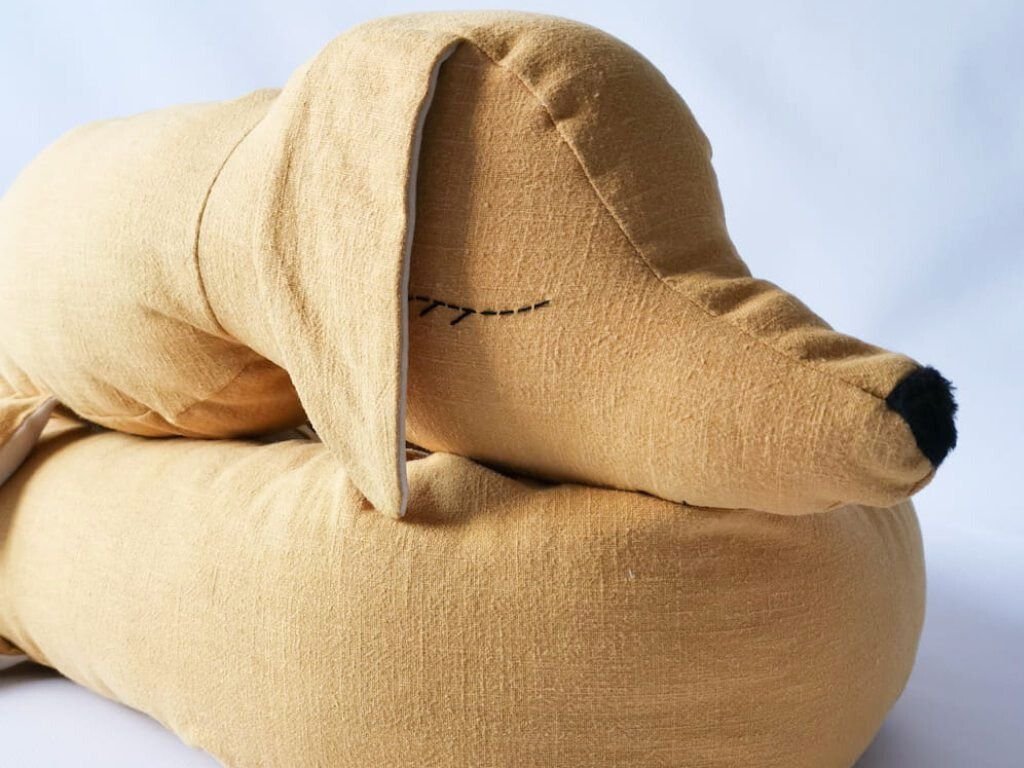 You can choose from 4 color variants - beige, light gray, mustard, and burgundy. It is made of top-quality 100% washed linen with a weight of 250 g/m2. Inside is a ball fiber filling made of antiallergic siliconized fiber. The guard is 200 cm long and 45 cm in circumference.