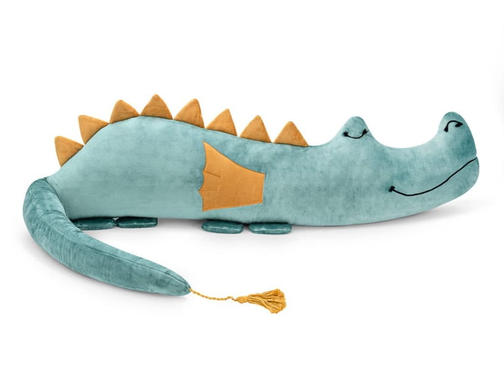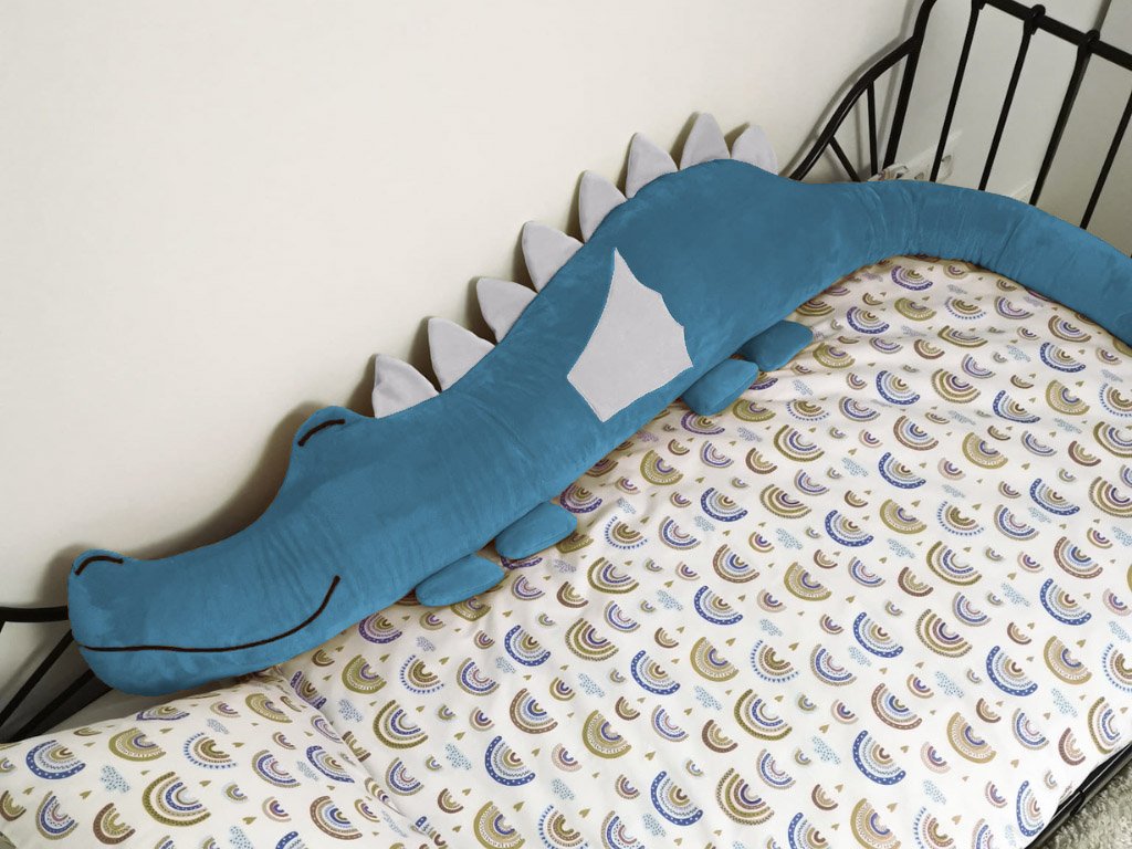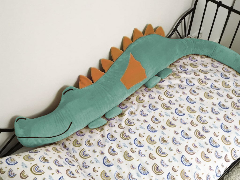 The dragon bumper is hand-sewn from high-quality materials, with embroidered eyes and mouth, and filled with siliconized fiber. It is also suitable for small allergy sufferers who need to be warm and safe. Made from a combination of minky fabric and cotton velvet, it is a soft and cuddly friend for every child's bed.