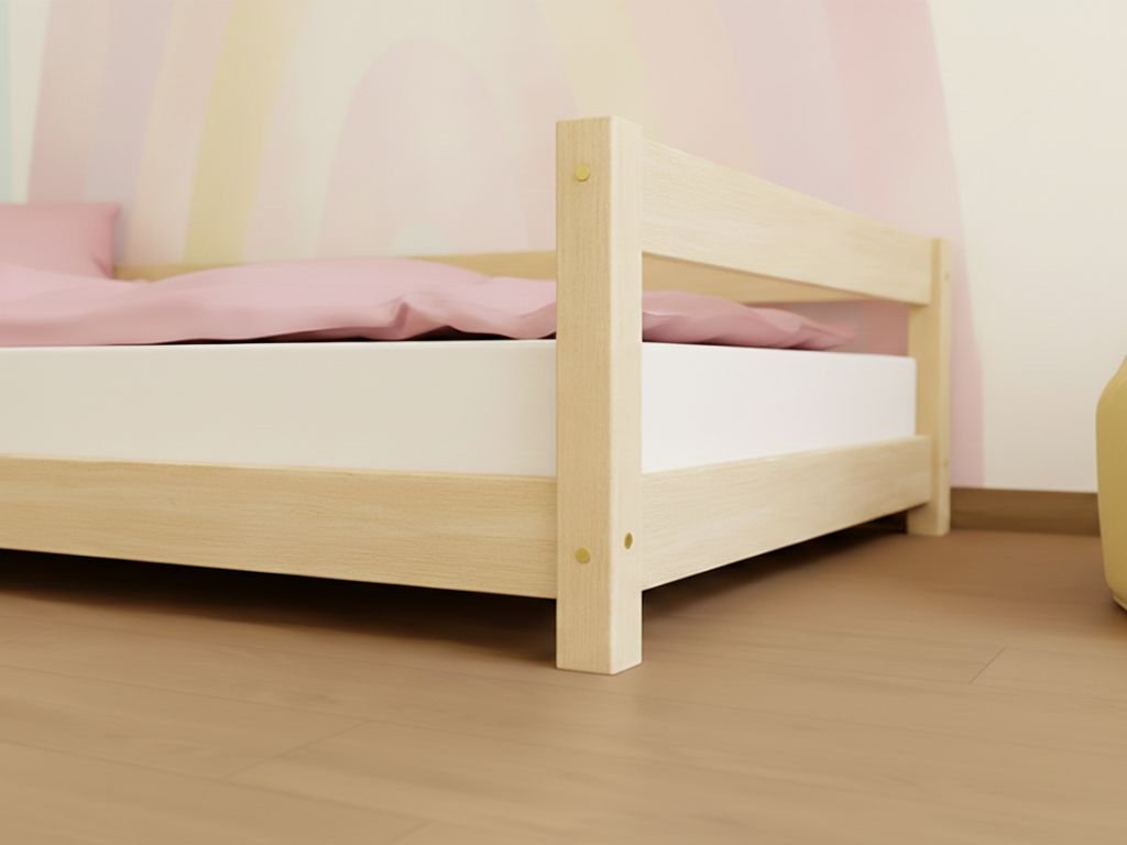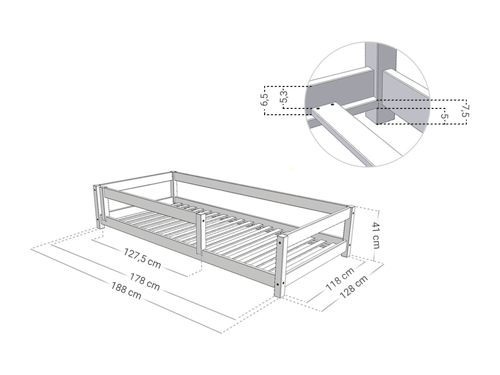 Moreover, bed with a bearing capacity of 120 kg can bear two of you at the same time. Each bed is hand-lacquered with lacquers of 8 different color shades. All of them are 100% ecological and suitable for people suffering from allergies. The bed frame starts at the height of 5 cm above the floor to make getting up easy even for smaller children. The bed height is in total 46,5 cm. As a gift, we will provide you with a slatted bed base.