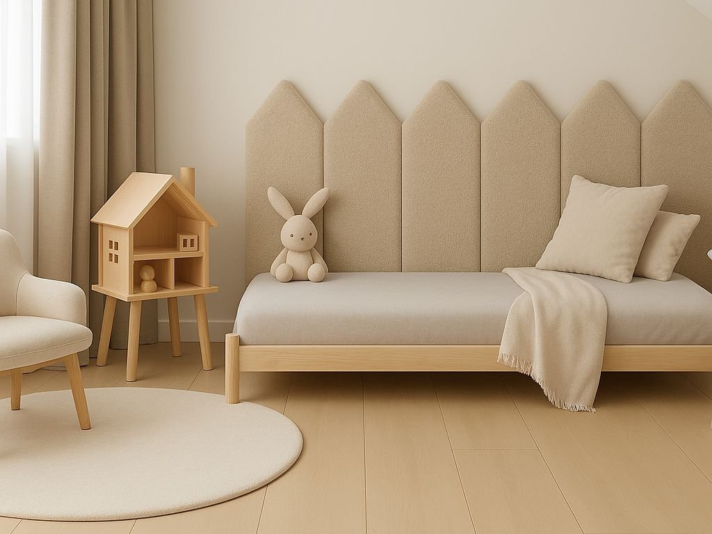 Upholstered wall panel BOUCLÉ in a picket-fence shape