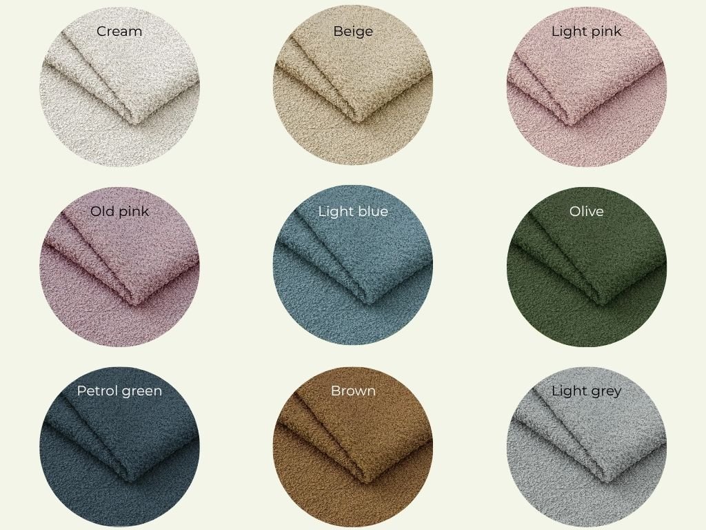 | Material: | MDF, foam, bouclé (100% recycled polyester) |