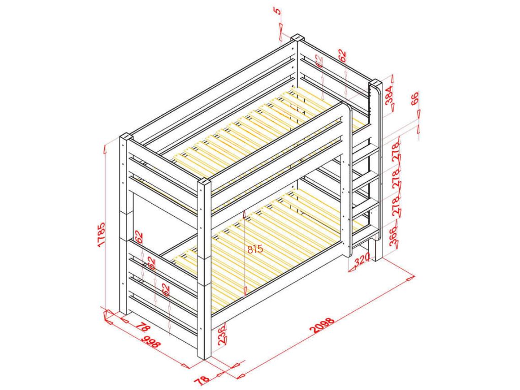 | Bed capacity: | 100 kg lower bed, 100 kg upper bed |